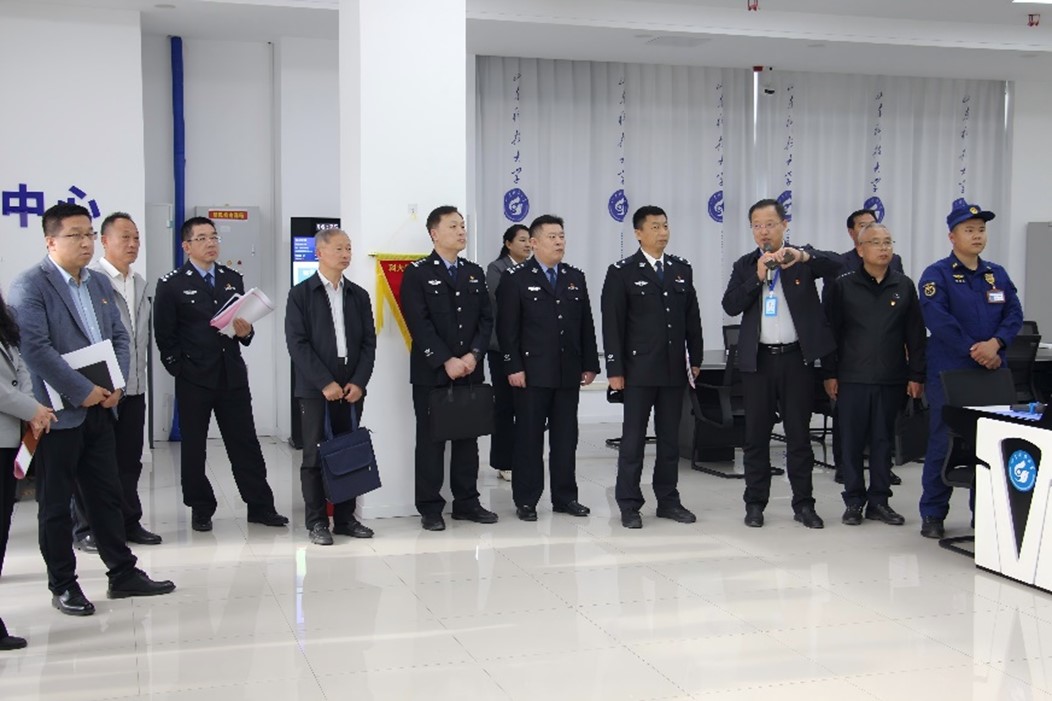 与会人员一同参观了山东科技大学应急指挥中心,实地了解学校在智慧安防建设、应急处突能力方面的举措与成果。